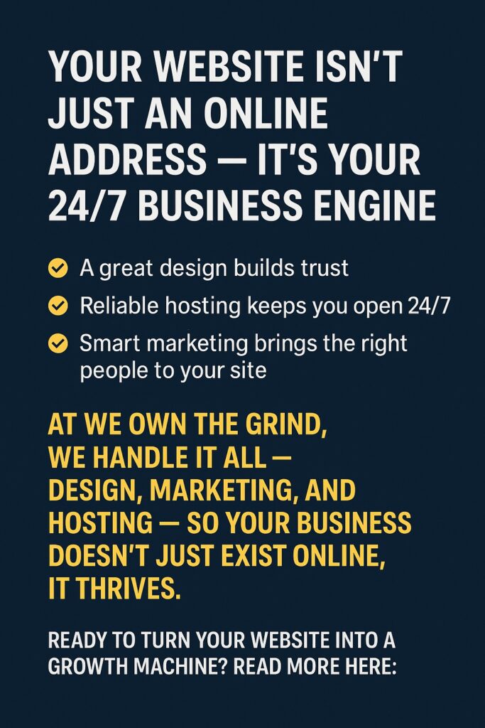 In today’s digital-first world, your website is more than just an online address it’s your brand’s storefront, sales engine, and customer service hub all rolled into one. But building a site is only half the battle. To truly thrive, you need expert design, reliable hosting, and smart marketing strategies that put your business in front of the right audience. That’s where We Own The Grind comes in.