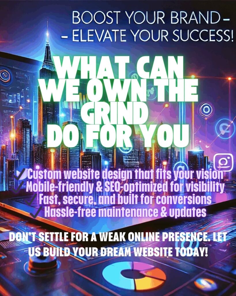 Your grind is unique to you, and your story has the power to inspire others. Let’s create a community where we lift each other up and celebrate the wins—big or small. Follow us, engage with us, and let’s own the grind together.